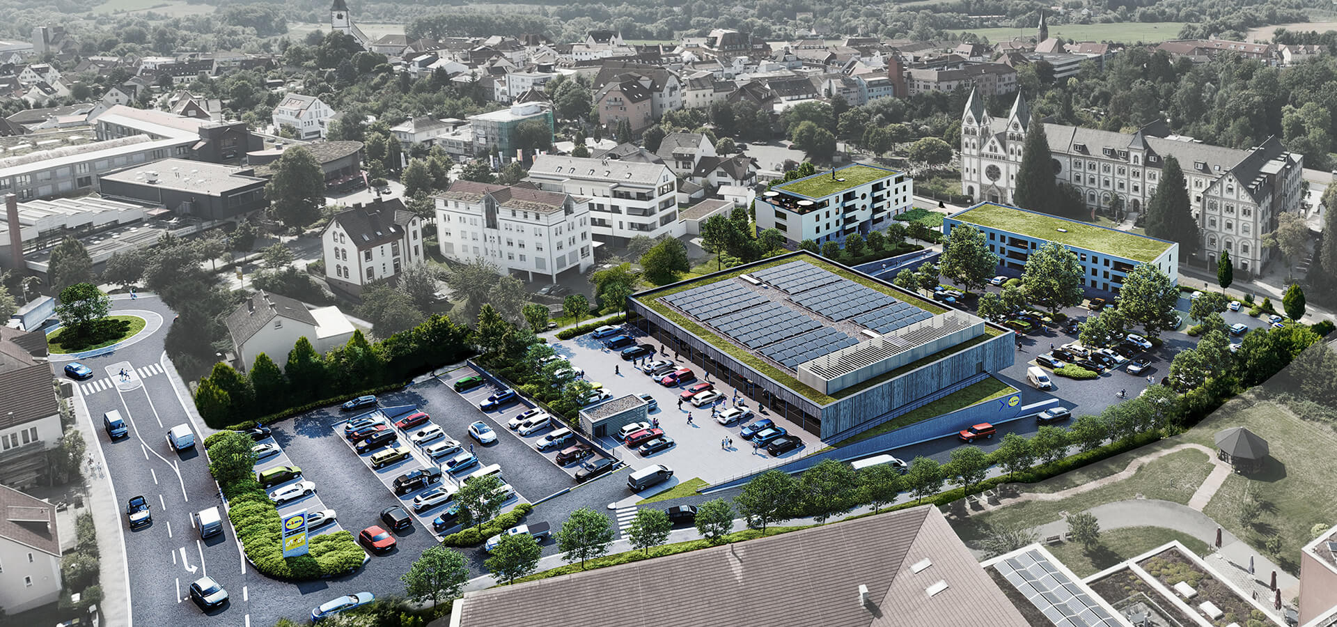 Mit dem Projekt Klostergarten entsteht auf dem historischen Areal der ehemaligen Klostergärten ein modernes, nachhaltiges Stadtquartier – mitten in Hünfelds Innenstadt. Ein neuer Lidl-Markt, zwei weitere Handelsflächen sowie 24 geförderte und 22 frei finanzierte Wohnungen schaffen zeitgemäße Versorgung und urbanes Wohnen.